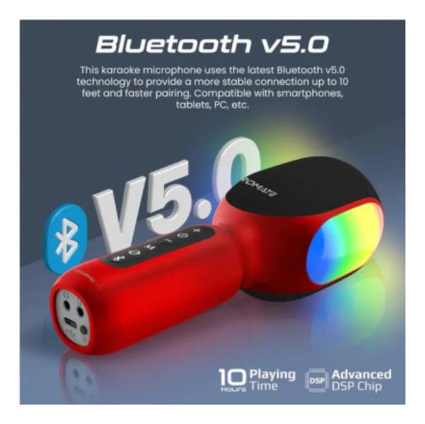 Microfono Promate Vocalmic.red Microfono 5 En 1 Con Luces Rgb Inal+bt Color Rojo